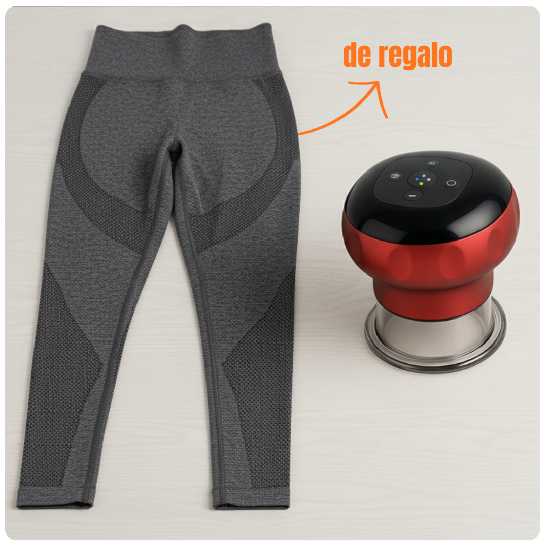 El combo está diseñado para mejorar el aspecto de la piel con celulitis: el masajeador estimula la circulación y la calza ayuda a modelar y disimular el poceado. Es una solución estética, no un tratamiento médico.